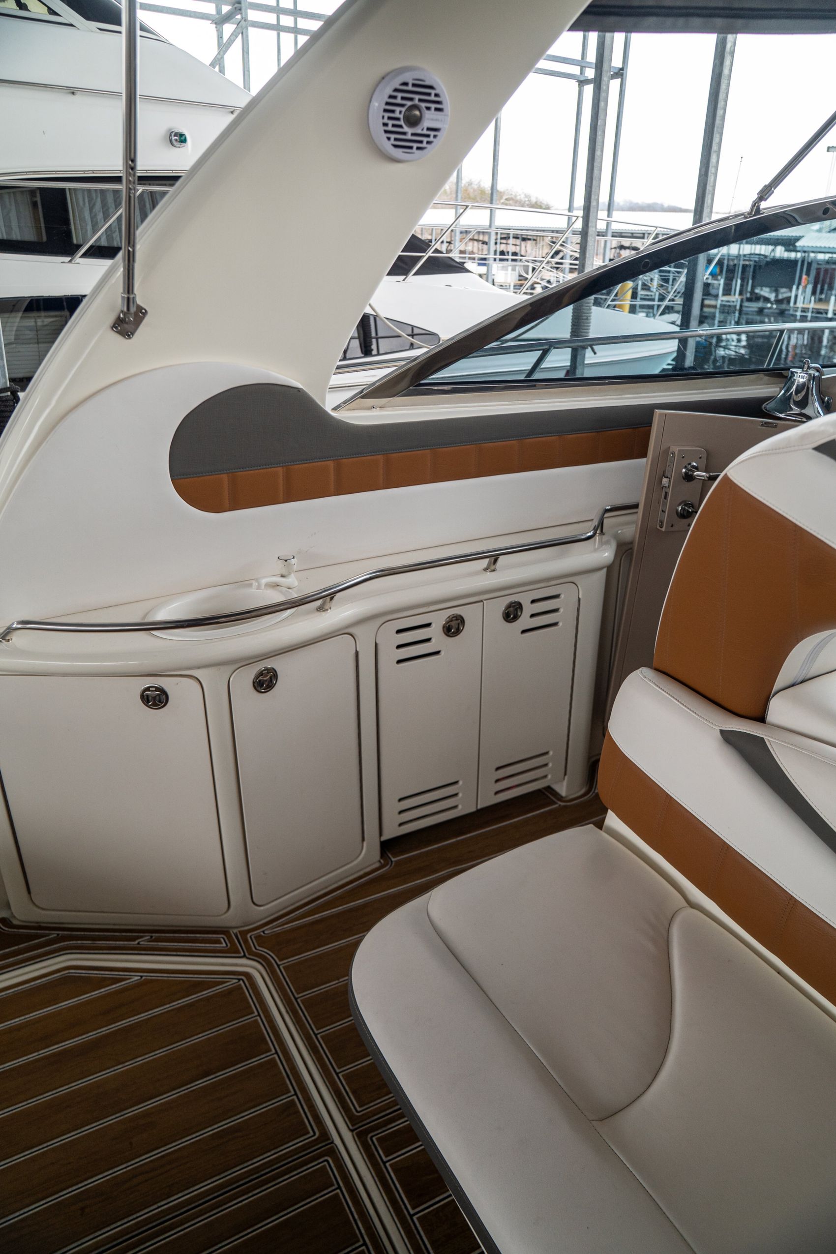 The SeaRay 410 Sundancer does not compromise on comfort. Boasting ample accommodation space, it is equipped with roomy cabins and plush seating for lounging on deck. The boat also features an extensive galley, showers, and air conditioning - perks for those who love to venture out into the open sea while enjoying the comforts of home.